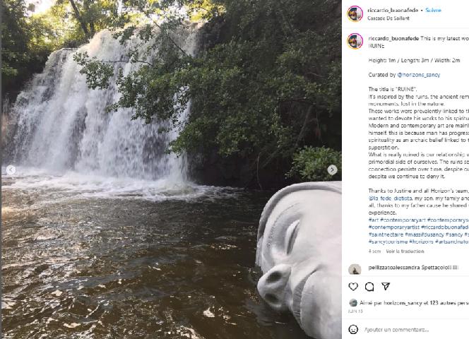 You can therefore find this work at the Cascade de Saillant, its exhibition venue, and discover the work of Riccardo Buonafede through his website.