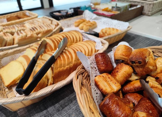 Commencez la journée avec un buffet complet : viennoiseries, céréales, pain, fruits, jus, laitages, œufs, produits sucrés et salés... Il y en a pour tous les goûts !