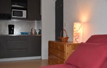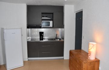 Retrouvez dans cet appartement, un séjour avec un coin cuisine équipé (frigo, micro-ondes, cafetière), un couchage double dans le séjour, une salle d’eau, des toilettes séparées ainsi qu’une chambre comprenant trois couchages individuels.