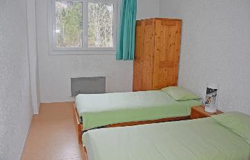 Un séjour, avec un coin cuisine équipé (frigo, micro-ondes, cafetière), un couchage double dans le séjour, une salle d’eau, des toilettes séparées, une chambre avec deux couchages individuels et une seconde chambre avec quatre couchages individuels.
