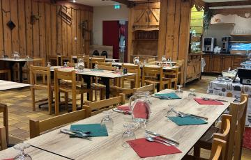 Possibilité de déjeuner en restaurant pied de piste, pour les formules en pension complète sans supplément, sous conditions sur place (formule plat/ dessert, boissons non comprises).