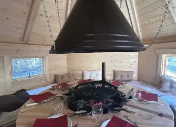 Pour un moment unique et original, louez le Chalet Finlandais pendant votre séjour ! Idéal pour un repas en famille ou entre amis, ce petit chalet vous offre un cadre chaleureux et typique pour vos soirées d’été qui se prolongent. Rendez-vous à l’accueil du village pour plus d’informations et réserver vos repas dans cet endroit insolite.
